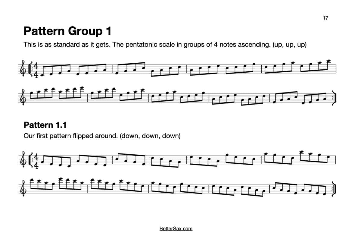 I start my students off on their improvisation journey with the pentatonic scale because it is immediately familiar, simple and gets instant positive results. My Pentatonic Patterns book will help you get the wonderfully useful pentatonic sound in your ear and under your fingers. You’ll be amazed at what you can do next!