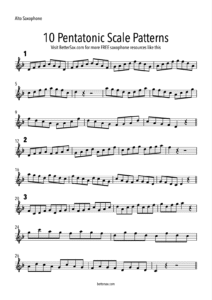 This article breaks down 10 awesome pentatonic scale patterns you can use to develop smooth, fast saxophone technique, solid rhythm, and killer improvisation chops. These exercises work on any saxophone, and you’ll find sheet music transposed for both alto and tenor in the free PDF. Click here to download the PDF.